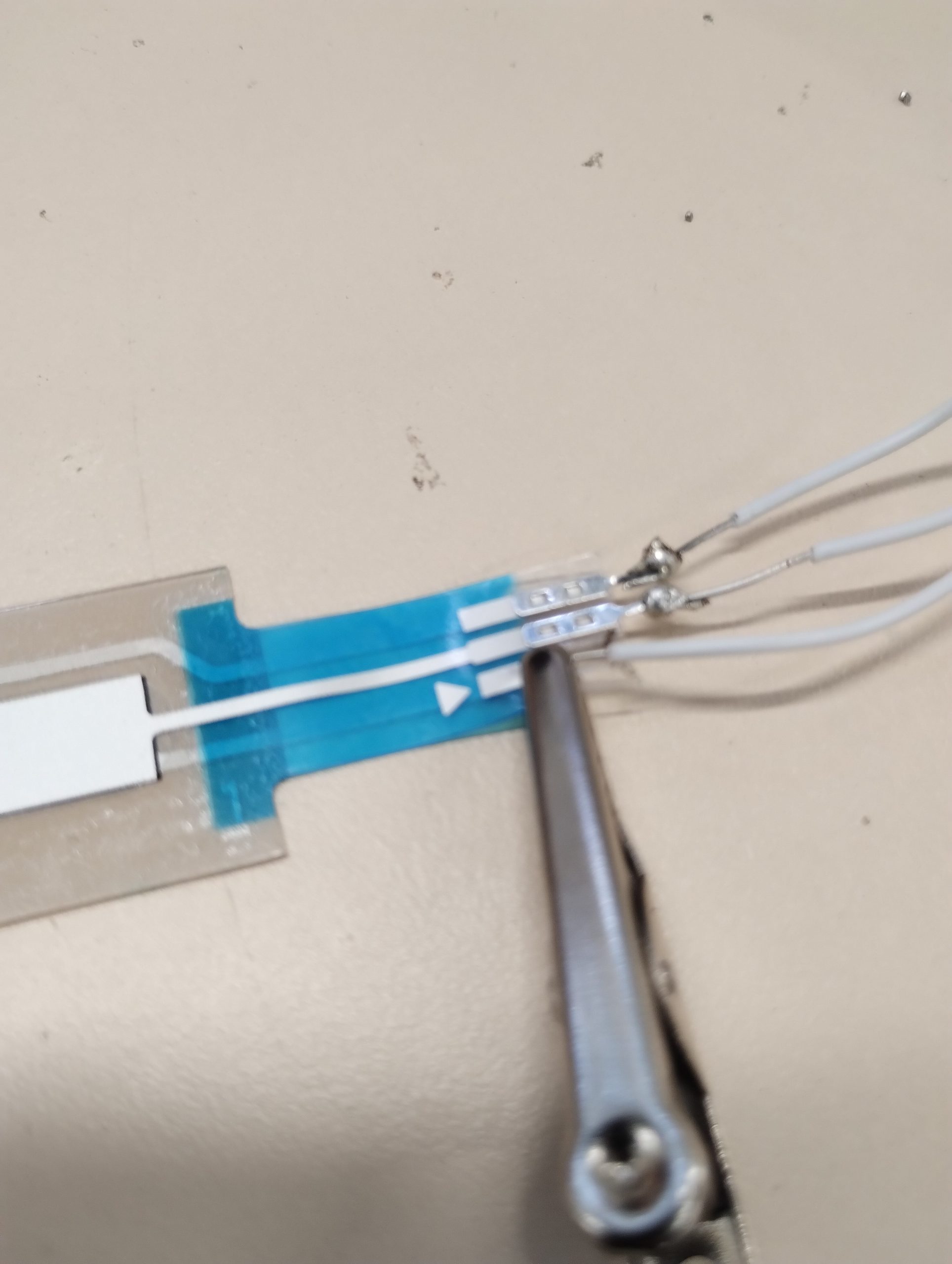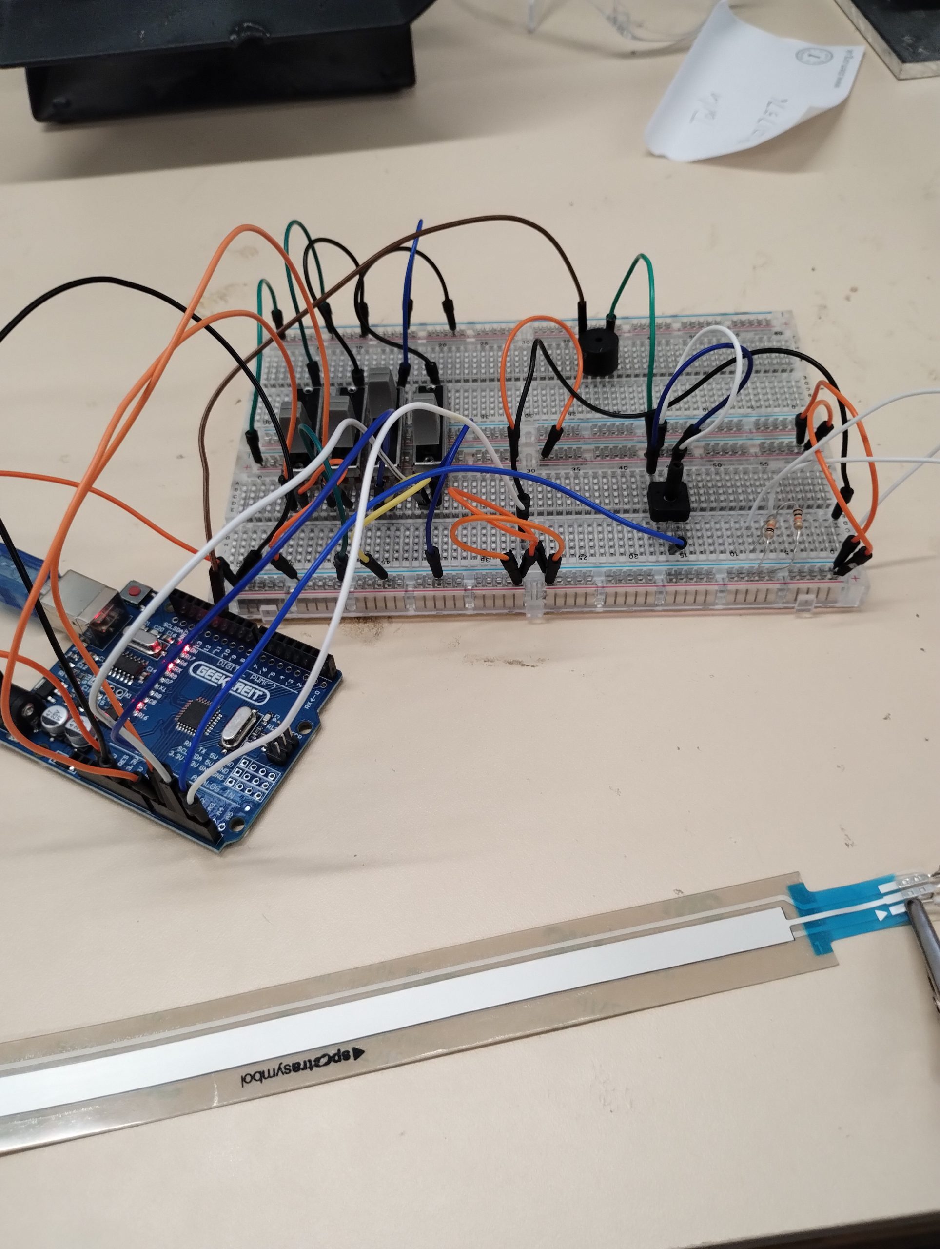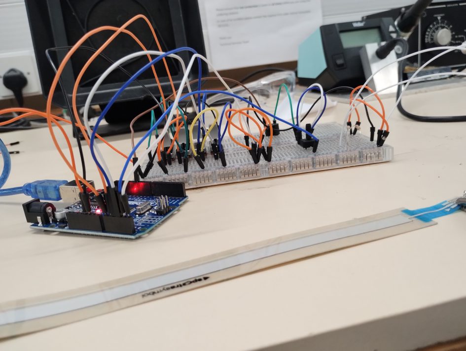 My first ever time soldering! It went alright, just soldering 3 wires onto the connectors of the touchstrip, so that it can interface with the breadboard.